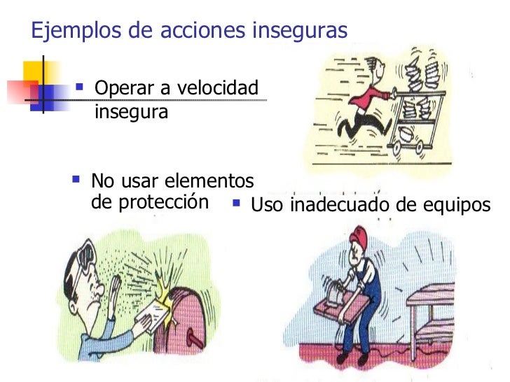 - Operar equipos sin autorización Mal uso de herramientas Manejo inadecuado de materiales